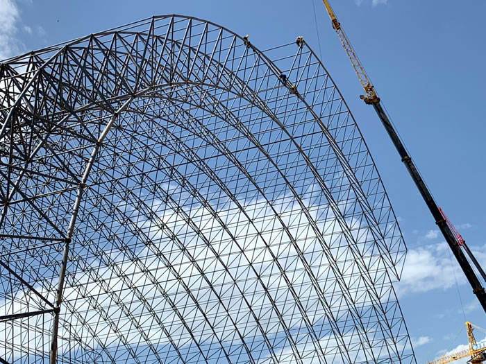 (2)网架加工前应对现场尺寸进行复测,确认无误后方可进行加工、安装;网架制作、运输、安装应遵守《空间网格结构技术规程》JGJ7-2010、《钢网架泰州螺栓球节点》JG/T 10-2009、《钢网架泰州螺栓球节点用高强度螺栓》 GB/T 16939-2016、《泰州钢结构泰州工程泰州施工规范》 GB50755-2012、《泰州钢结构泰州工程泰州施工质量验收标准》 GB50205-2020。